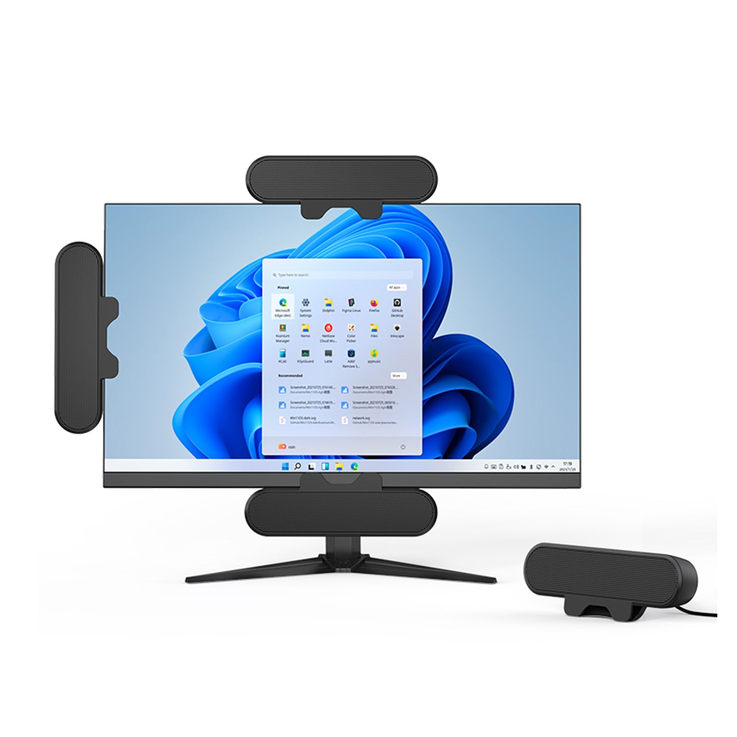 Inwa Computer Speakers for Desktop PC, USB Monitor Speaker Bar with Clip-On, Wired Desk Speakers with HD Stereo Loud Sound, Laptop Speaker Mini Sound Bar, Easily Clamps to Monitor